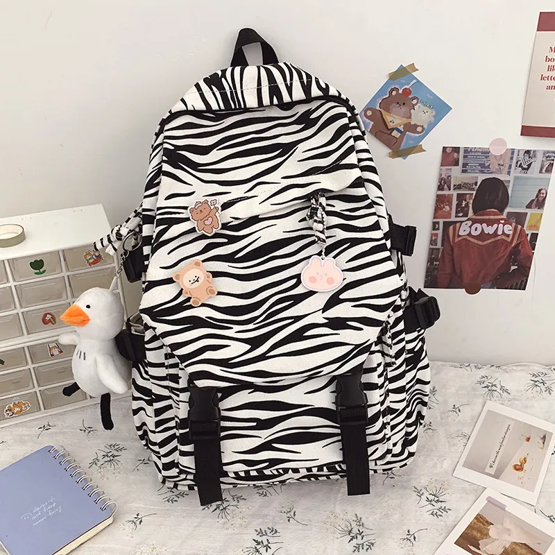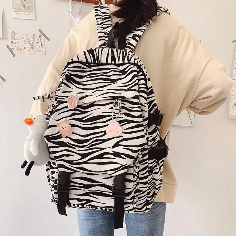 The cow print and Korean-inspired aesthetic make this backpack a fashionable accessory that stands out from the crowd.