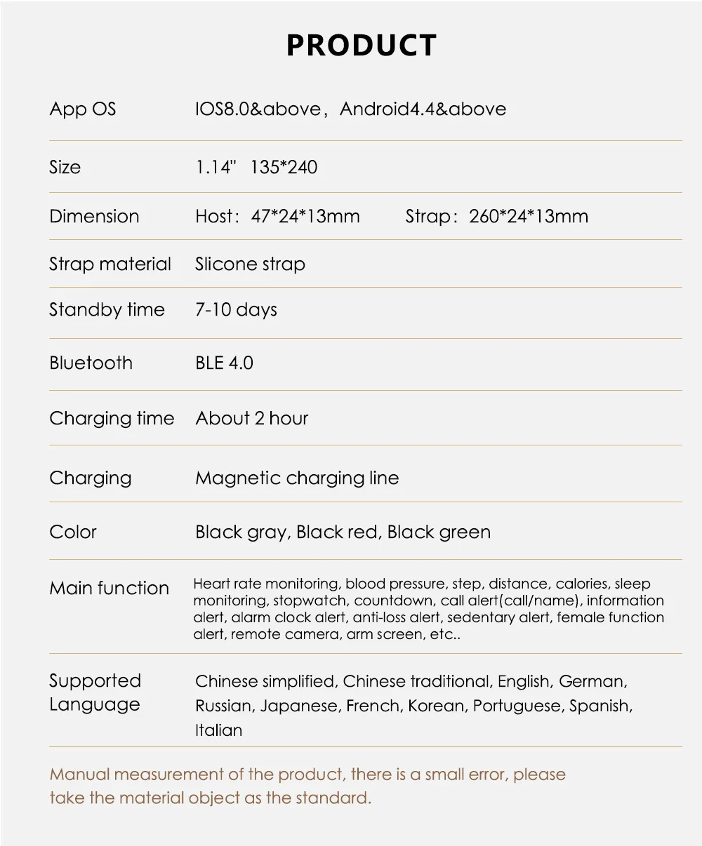 Take control of your health and fitness with the Color Screen F21 Smart Bracelet. Featuring a vibrant color screen and an array of powerful features, this sleek and stylish smart bracelet is designed to help you stay on top of your fitness goals and monitor your sleep patterns for a healthier lifestyle. Whether you’re tracking your workouts, staying connected with notifications, or optimizing your sleep, the F21 Smart Bracelet offers the functionality you need in a comfortable, easy-to-use design.