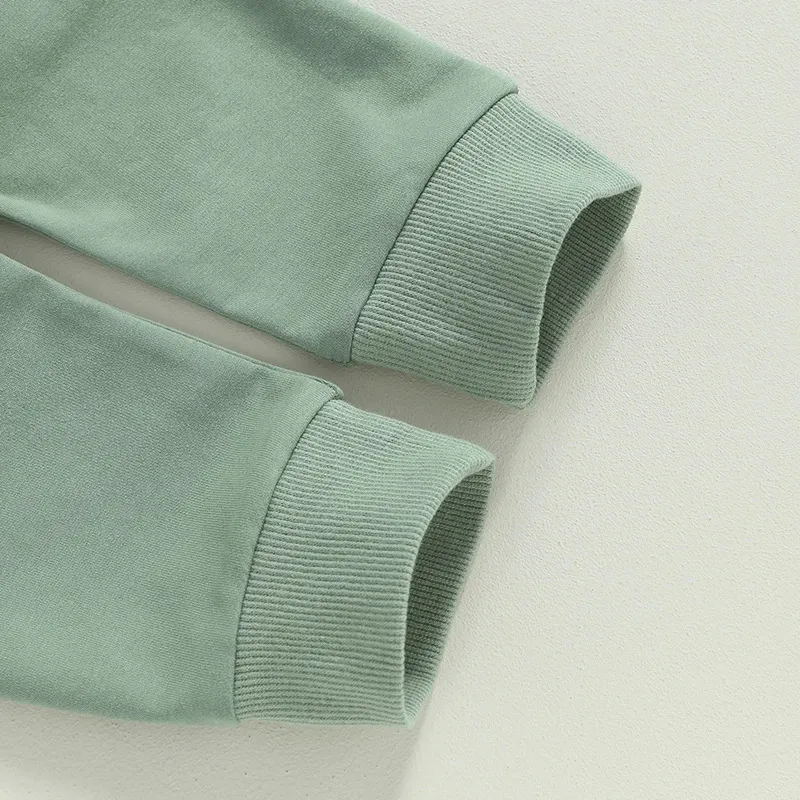 The matching trousers are designed for comfort and freedom of movement. Featuring an elastic waistband, these pants offer a flexible fit that’s perfect for running, jumping, and climbing. The relaxed, slightly tapered cut ensures that your child has plenty of room to move, while still looking stylish. The trousers are designed to complement the hoodie, creating a coordinated and fashionable look.