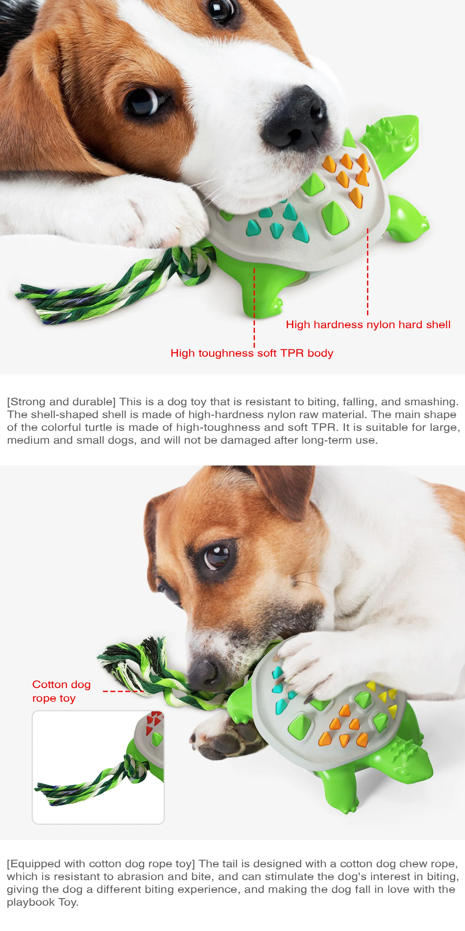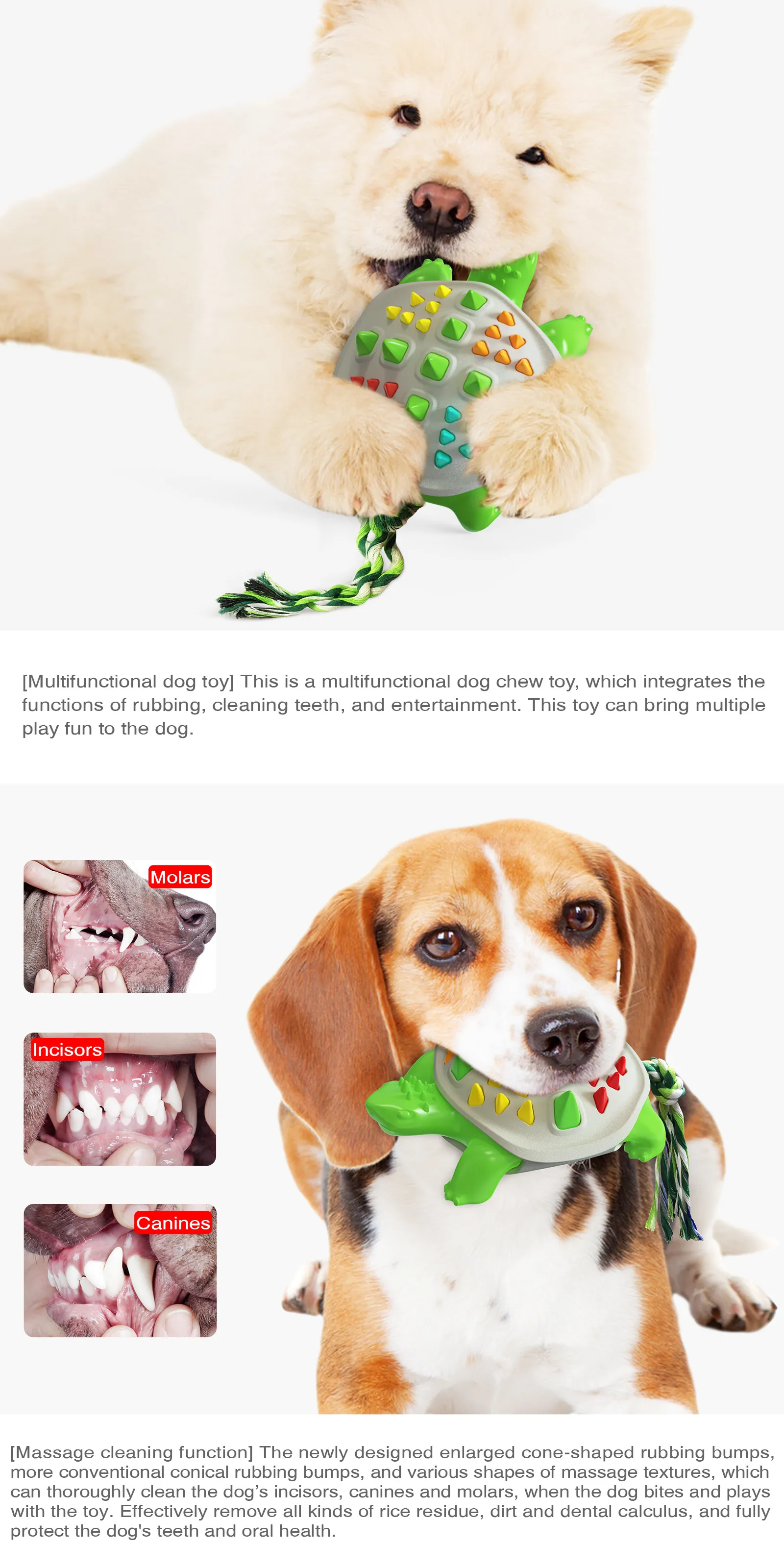 Whether you have a small dog or a larger breed, the God Tortoise Dog Molar Stick is designed to be fun and suitable for all dog sizes. Its durable construction ensures that even larger dogs with strong jaws can enjoy it without worrying about the toy breaking.