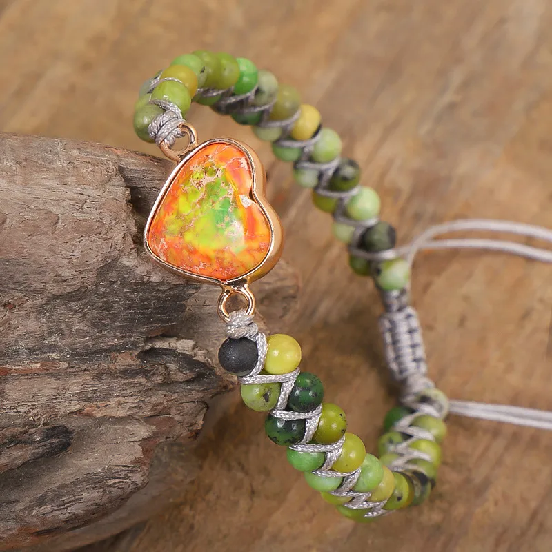 Colorful Heart Emperor Hand Braided Double Winding Stone Bracelet: A Vibrant and Meaningful Accessory