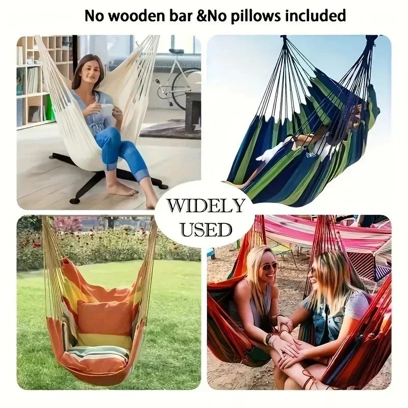 Embrace comfort and style with our Colorful Striped Canvas Hammock Chair, designed to enhance your relaxation experience both indoors and