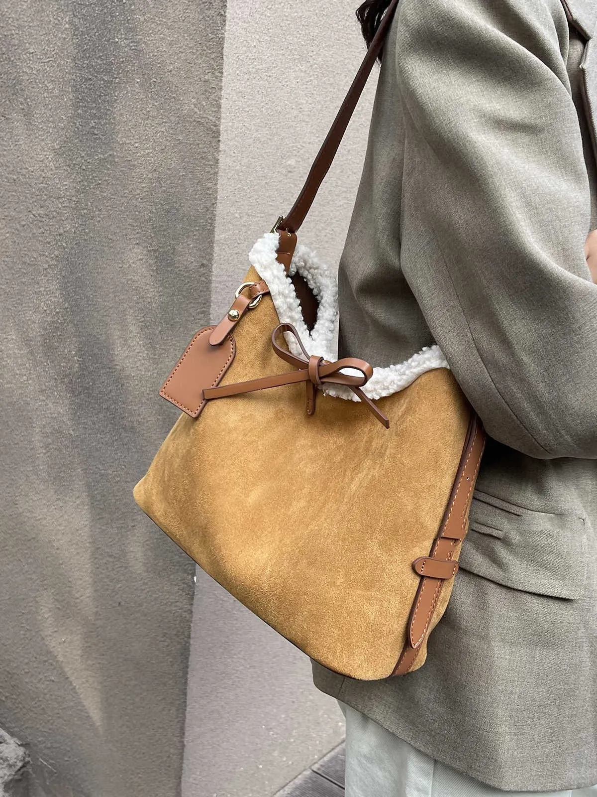 The standout feature of this suede commuter bag is its large capacity, allowing you to carry everything you need for the day in one stylish and organized space. Whether it's your laptop, documents, wallet, makeup essentials, or personal items, this bag ensures that everything fits neatly, thanks to its carefully crafted interior compartments.