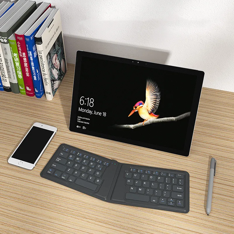 Take your productivity to the skies with the Aerospace Folding Bluetooth Keyboard, a sleek, ultra-portable wireless keyboard designed for users on the move. Whether you're working from a café, traveling, or simply need a clutter-free desk setup, this foldable Bluetooth keyboard is your perfect digital companion.