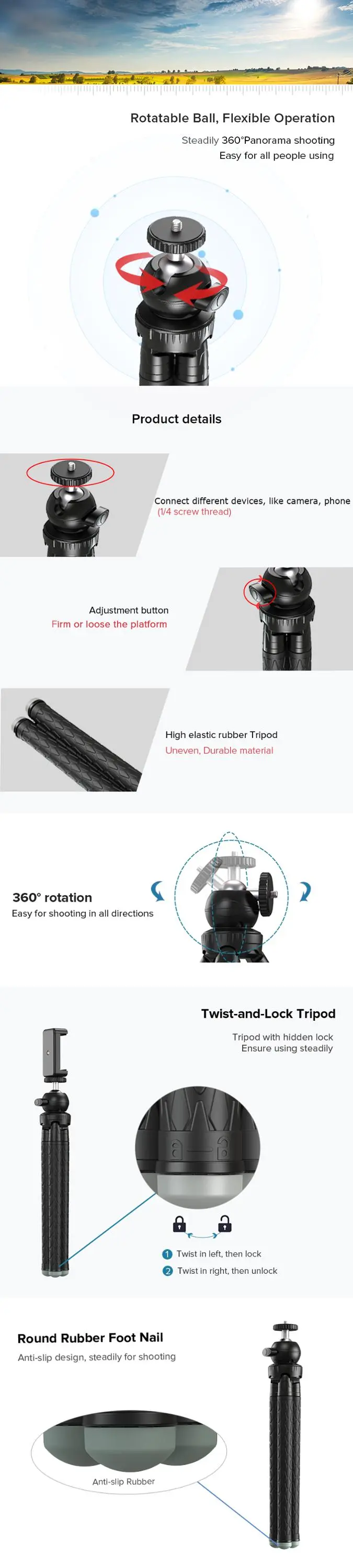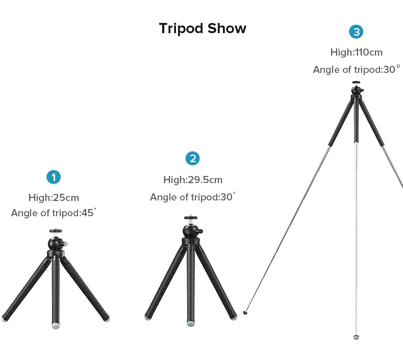 4. Hidden rotary tripod lock, firm buckle lock, round head rubber nails, strong grip, stable anti-skid.