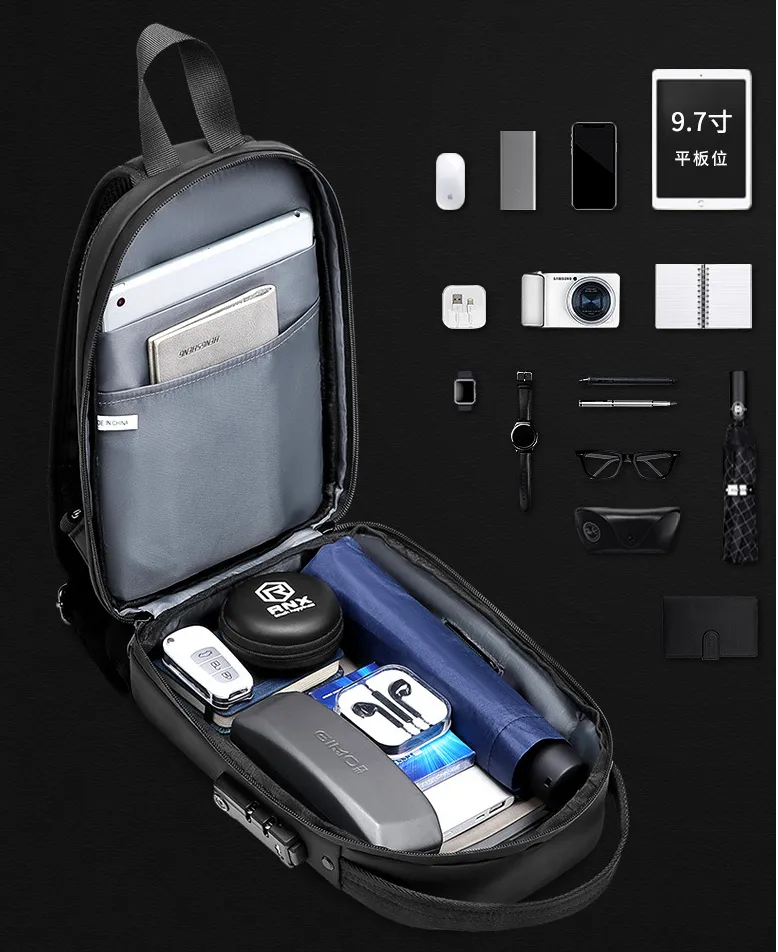 Compatible with Apple, Rowe New Design Crossbody Bag For Men Fit for 10.2 Inch iPad Waterproof Anti-thief Shoulder Bag USB Charging Sling Chest Bags