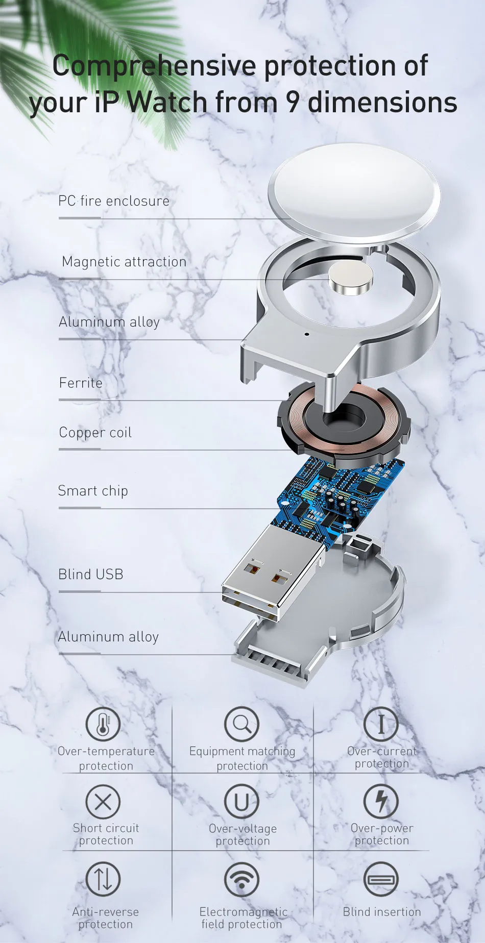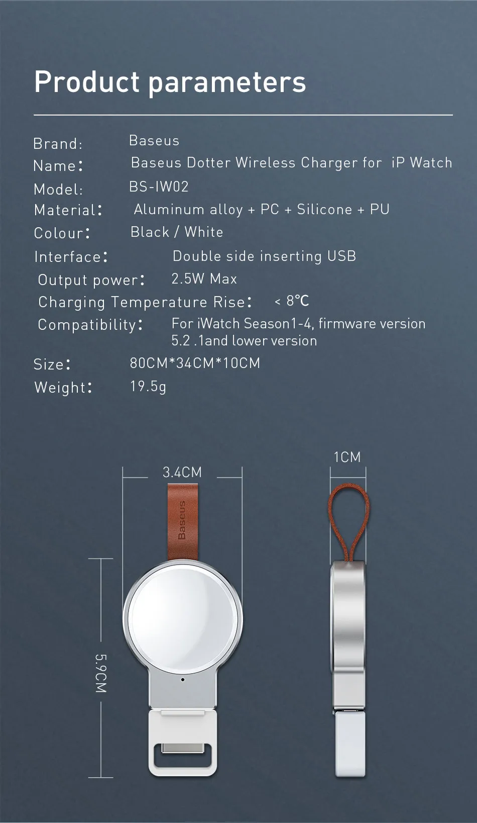 Baseus Portable Wireless Charger for Apple Watch Series 4/3/2/1 Magnetic Wireless Charging for Apple Watch Fast USB Charger