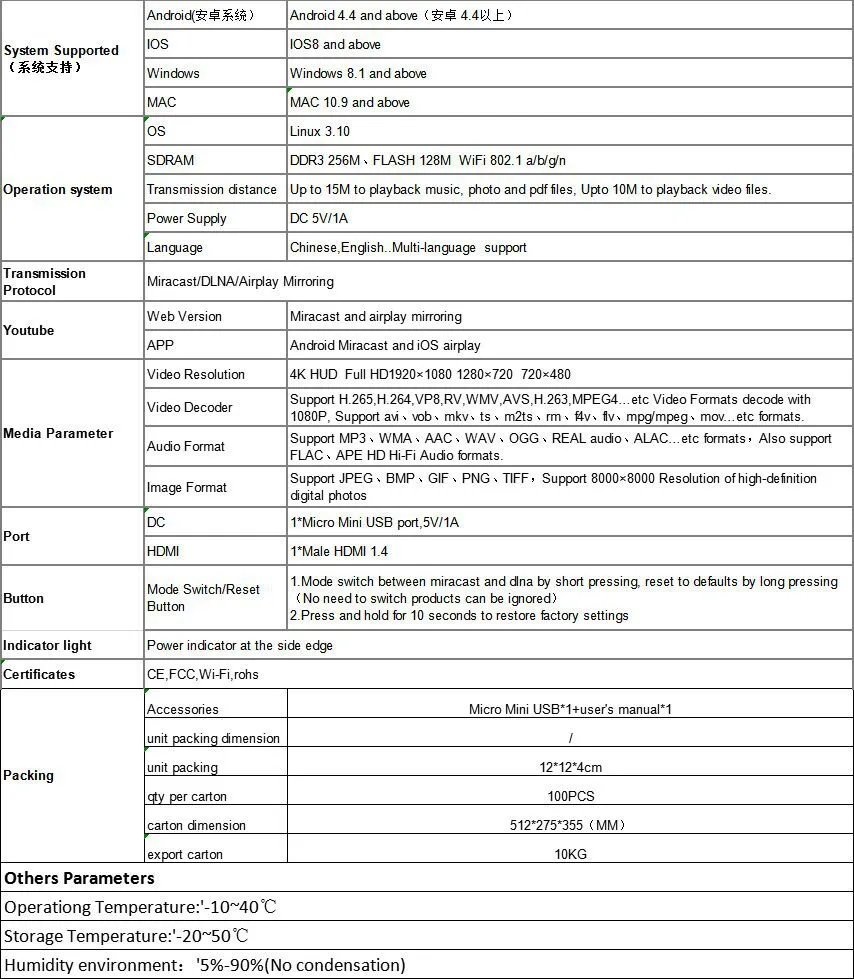 Additional features: Mobile phone wireless projection WiFi push treasure