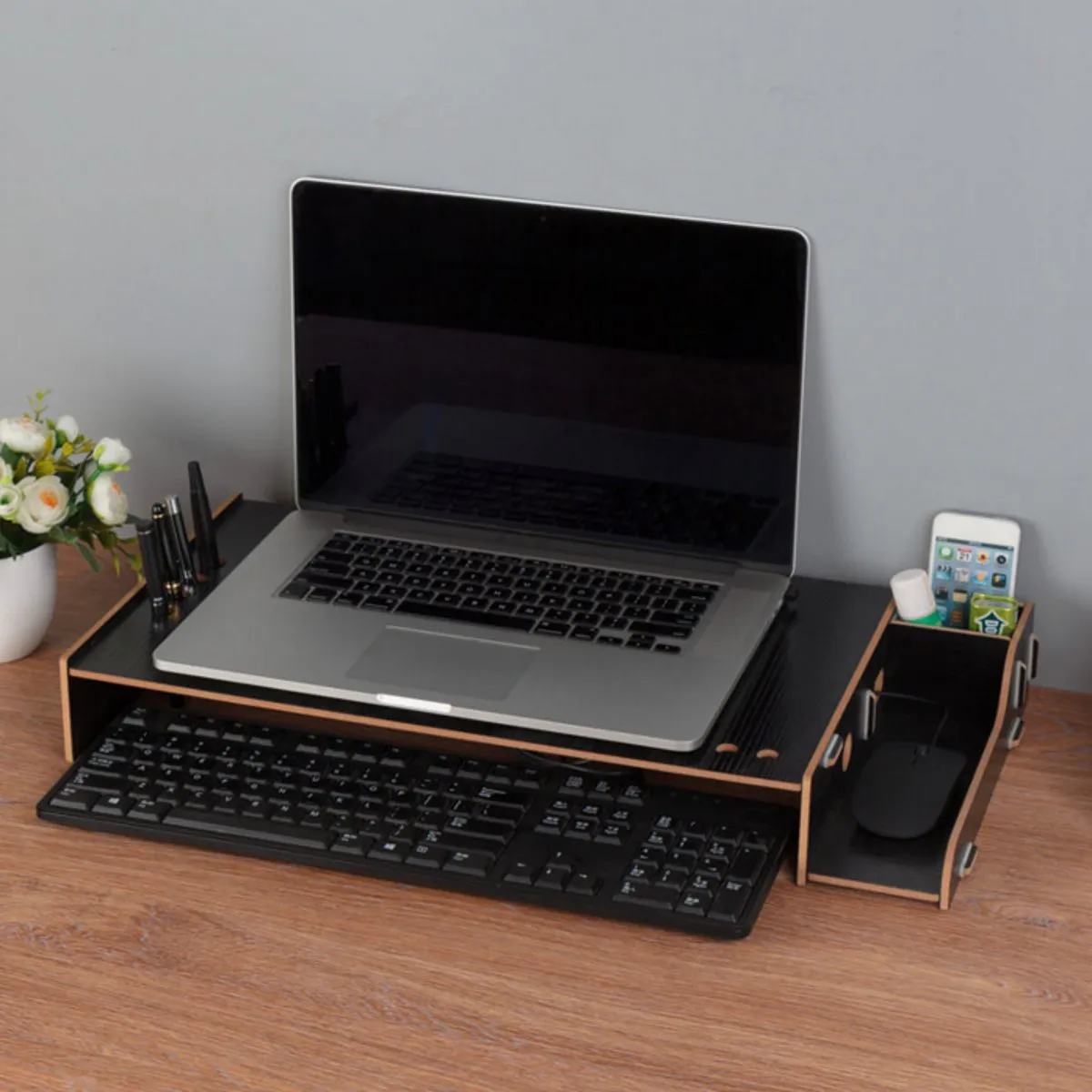 Made from high-quality, eco-friendly wood, the Computer Work Display Rack not only offers durability but also supports sustainable living. By choosing this product, you are investing in a long-lasting, environmentally responsible solution that contributes to reducing plastic waste and supports a more eco-conscious approach to office furniture.