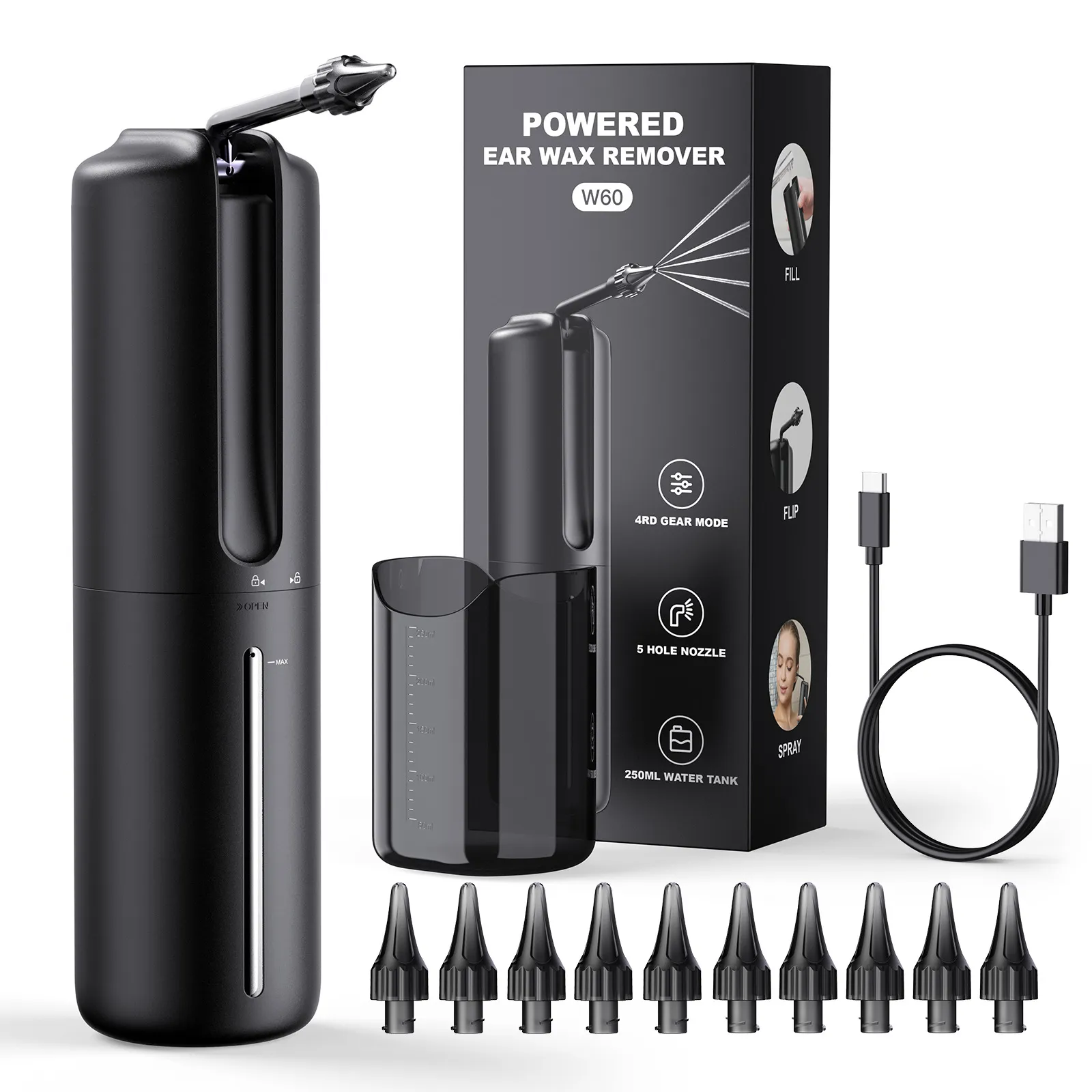 Specification: W60 ear washing black (neutral English color box)