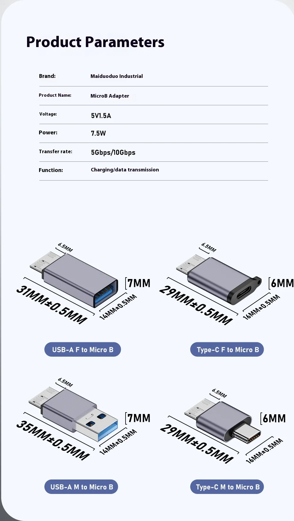 Applicable models: Micro B interface old mobile hard disk hard disk box mobile phone, etc.