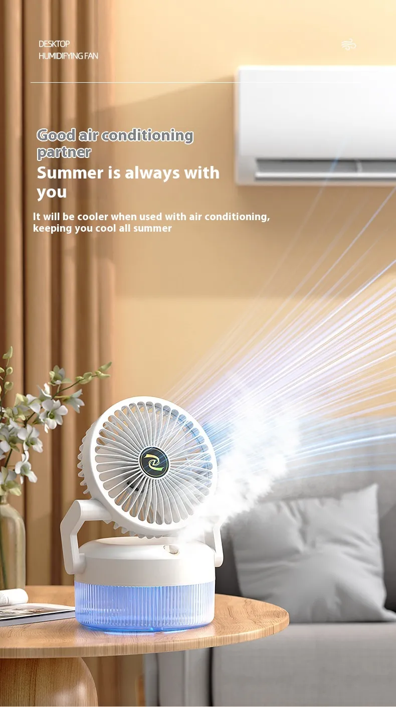 If you're looking for a compact, efficient, and eco-friendly way to stay cool and comfortable, the Cooling Desktop Fan USB Charging Humidifying Ice Mist Fan is the perfect choice.