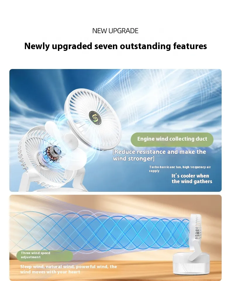 The fan features multiple speed settings, giving you control over the intensity of the airflow. Whether you need a light breeze for a relaxed atmosphere or a stronger gust to cool off quickly, this fan can meet your needs with ease. The adjustable speed lets you tailor the cooling effect to your personal preference.