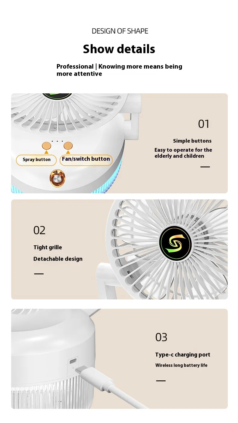 Energy Efficient: The fan is designed to consume minimal energy while providing effective cooling and humidifying.
