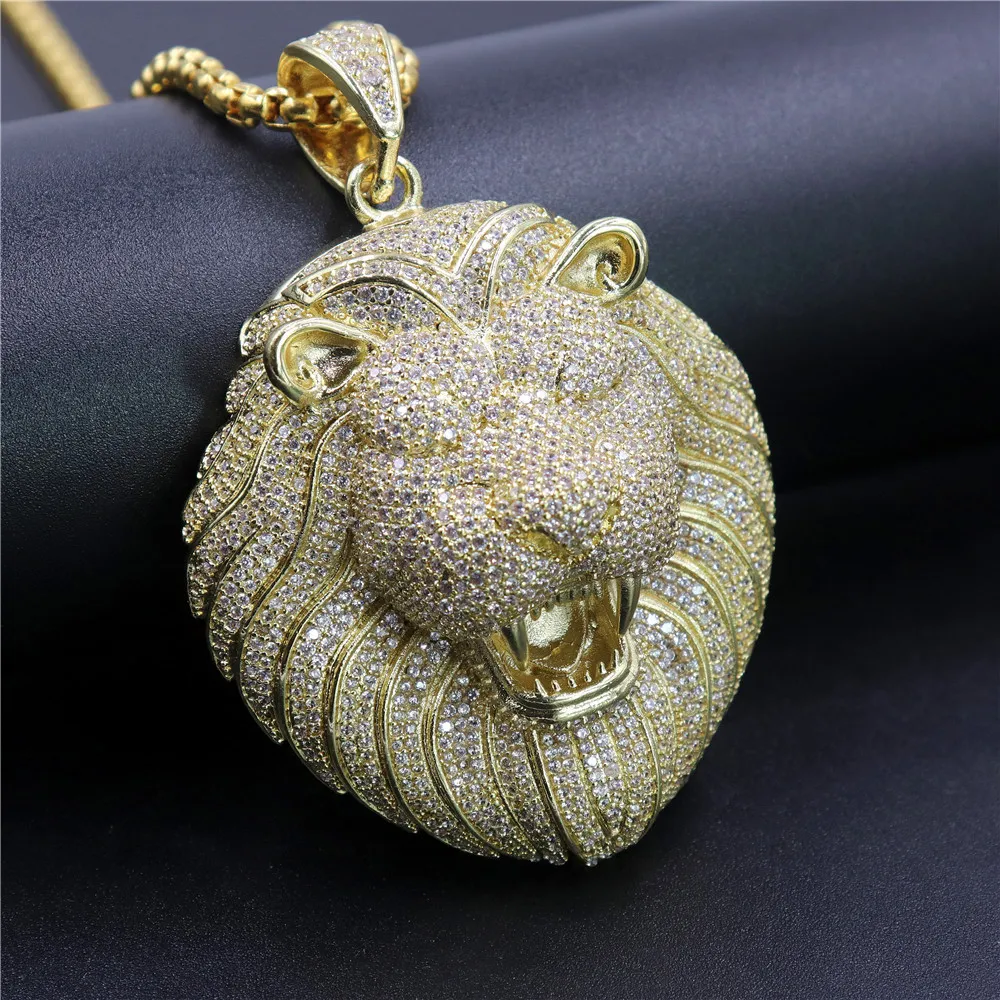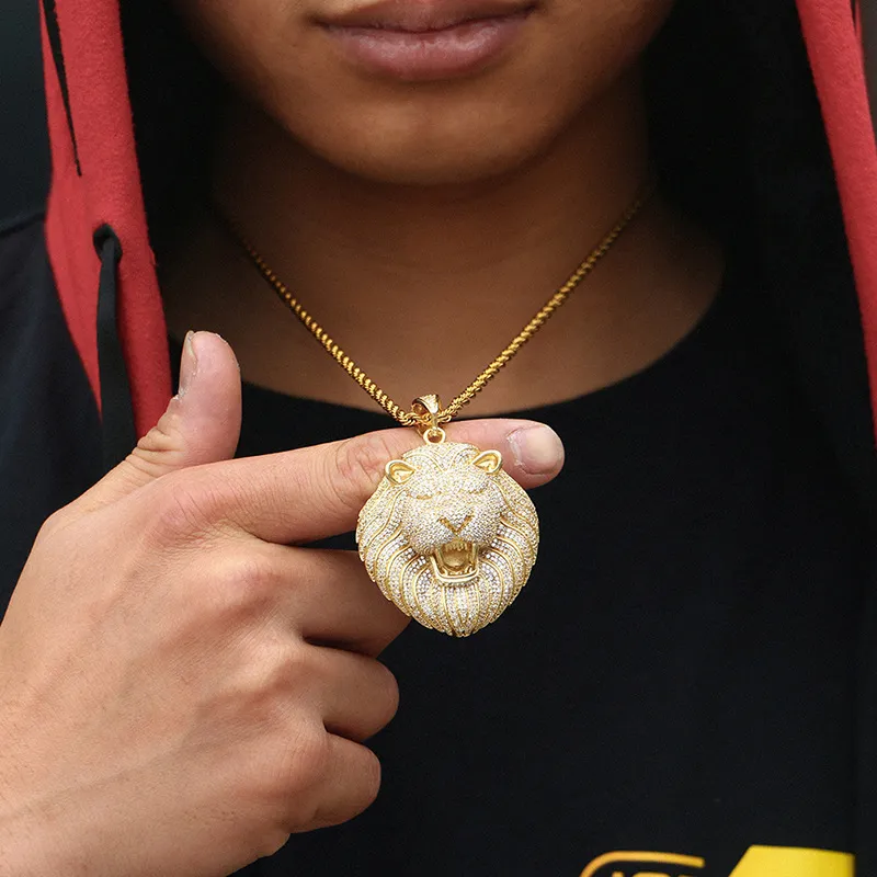 Copper Inlaid Zirconium Sparkle Lion Pendant