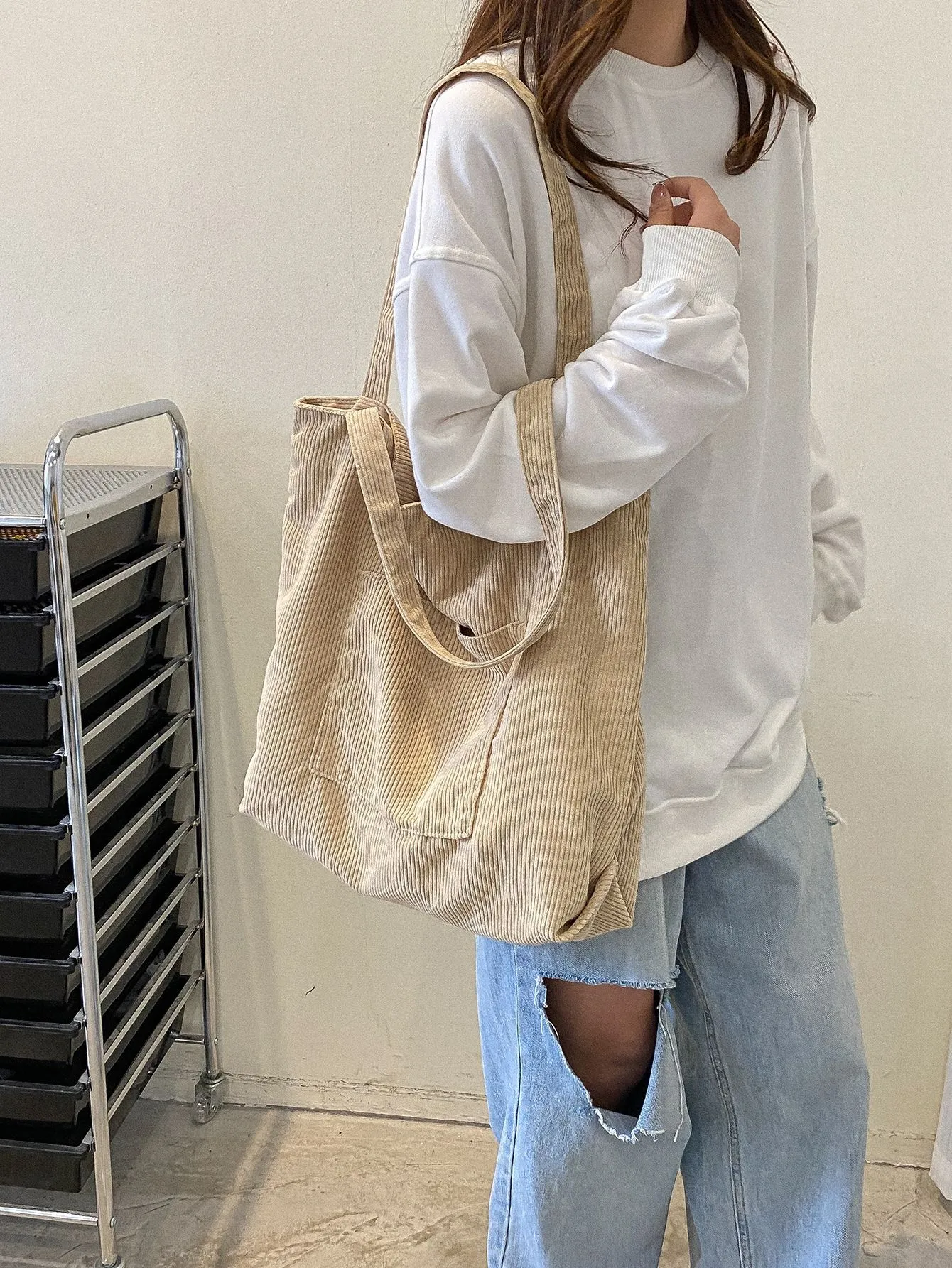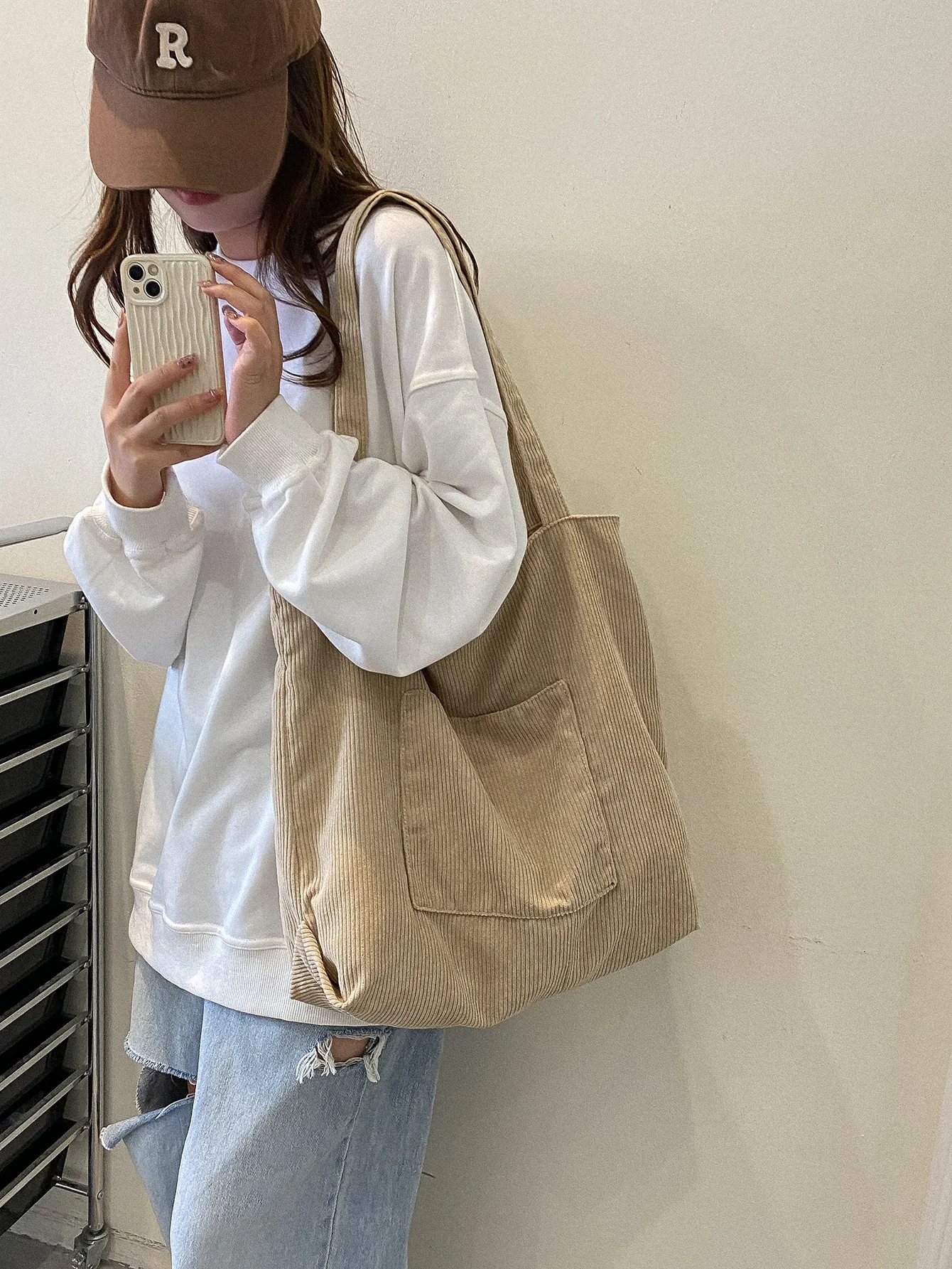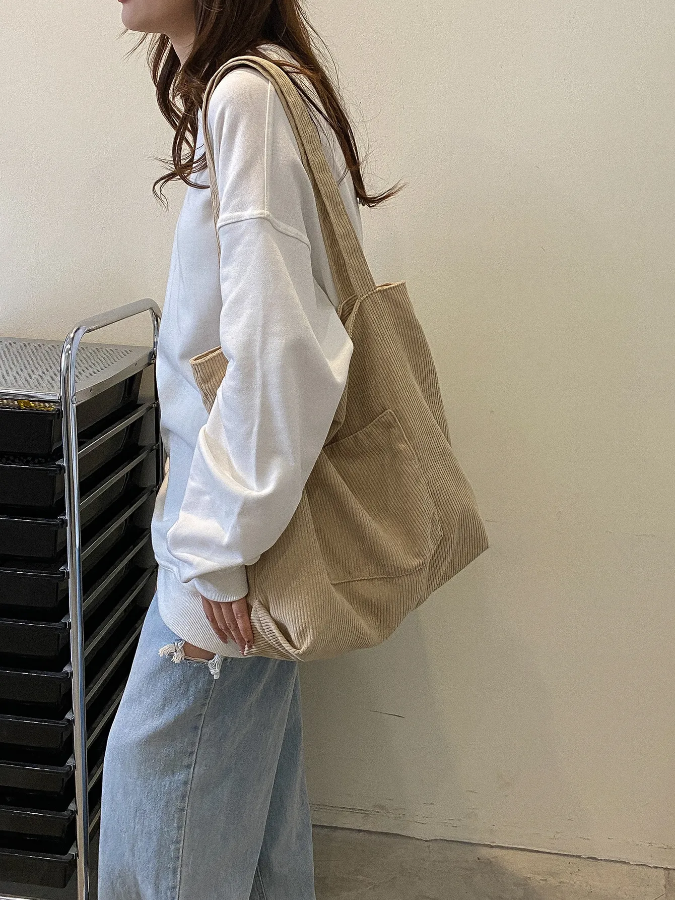 Corduroy Cloth Versatile Large Capacity Shoulder Bag Literary Handbag