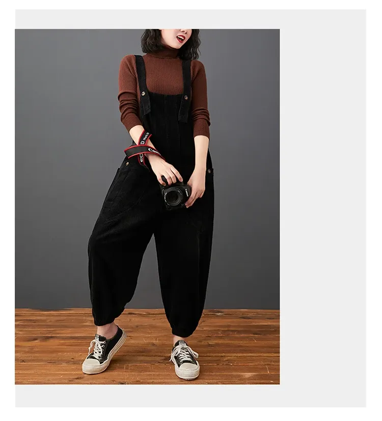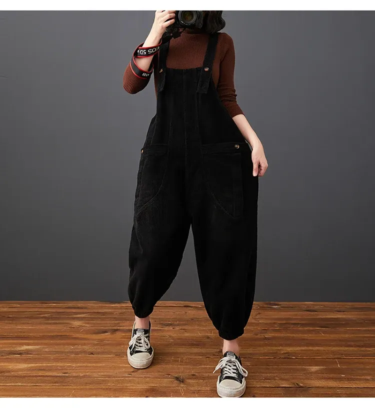 Corduroy Large Pocket Age Reduction Plus Size Overalls