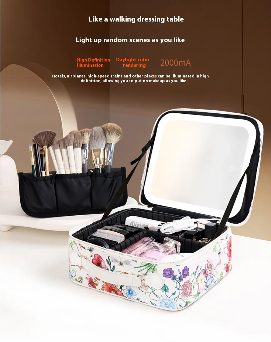 Cosmetic Bag Portable Cosmetics Storage Box With Light And Mirror