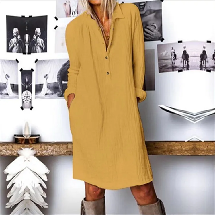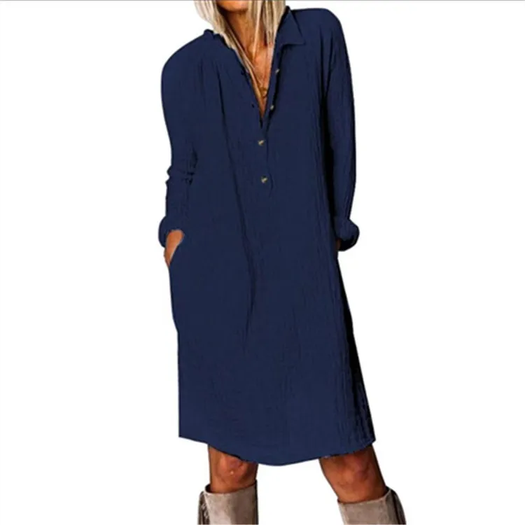 Cotton and linen long sleeve dress