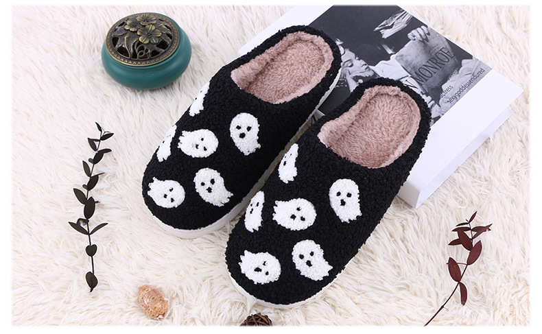 Design and Material These slippers are made from high-quality plush cotton, offering a soft and comfortable feel that your feet will love. The cute ghost cartoon design adds a fun and festive touch, making these slippers a great choice for Halloween or year-round wear. The upper material is plush, providing a luxurious texture, while the interior is lined with warm, breathable cotton to keep your feet snug during the colder months.