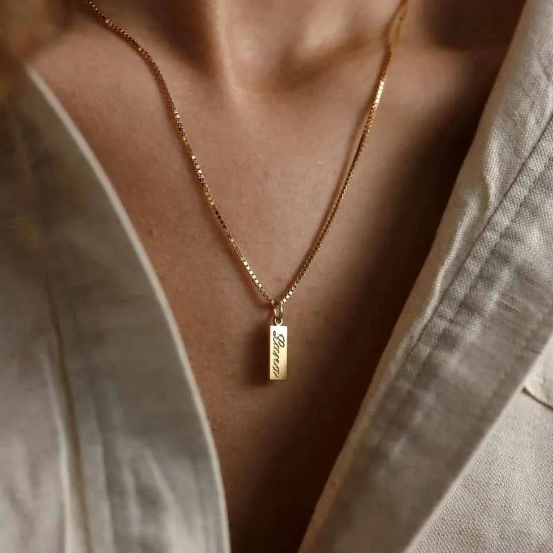 This engraved necklace is designed to sit gracefully on the collarbone, adding a delicate charm to any outfit. Whether you're celebrating an anniversary, a special moment, or simply expressing love, this necklace is a timeless accessory that will be cherished for years to come.