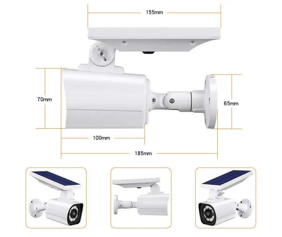 With its built-in solar panel, this device charges during the day and automatically turns on at night, ensuring cost-effective operation without wiring or electricity costs. The realistic camera design, complete with a flashing LED indicator, creates the impression of 24/7 monitoring, making it an ideal anti-theft deterrent for any outdoor space.