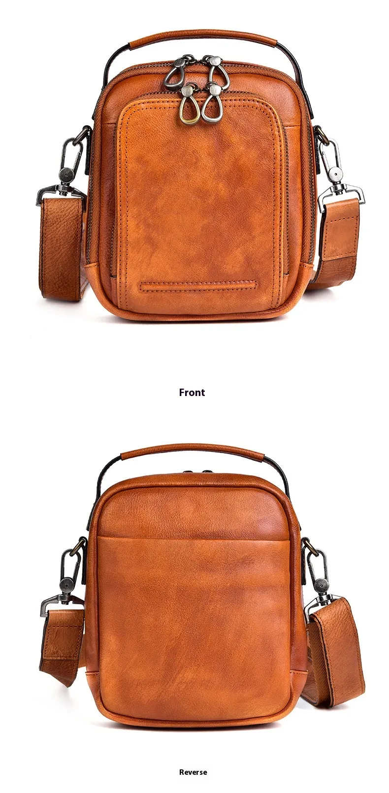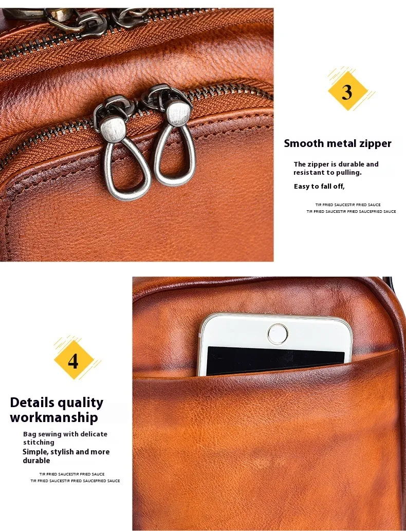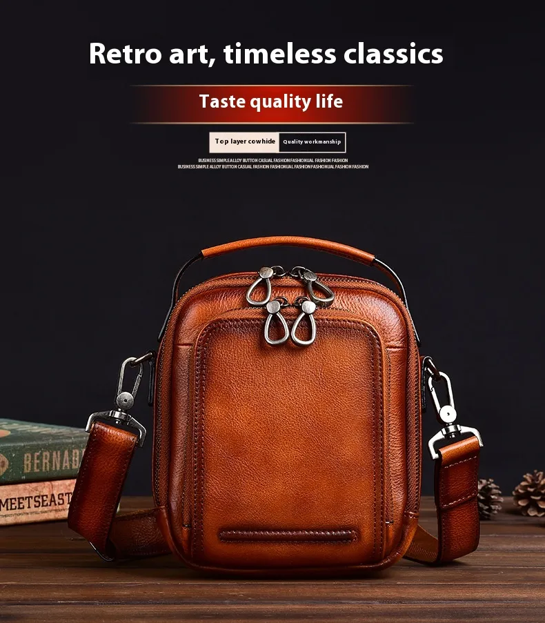 from high-quality cowhide leather, this messenger bag features a distinctive retro design that combines durability with timeless appeal.