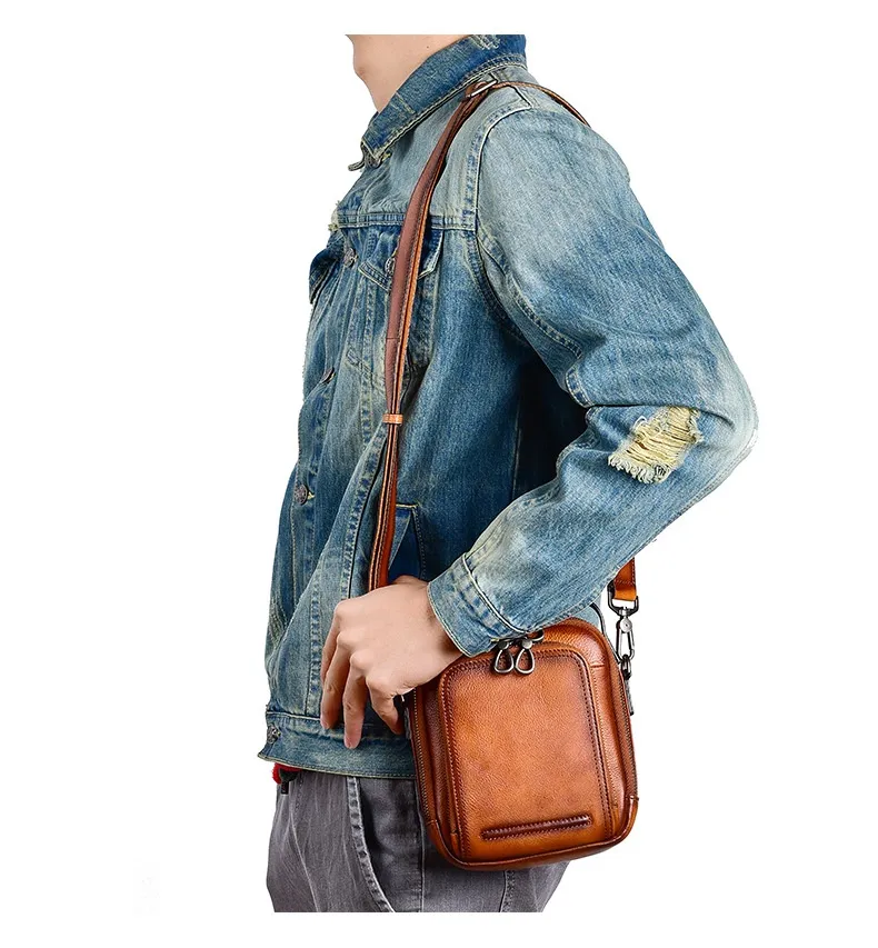 carry with the Cowhide Retro Casual Men's Messenger Bag, where classic style meets modern convenience.