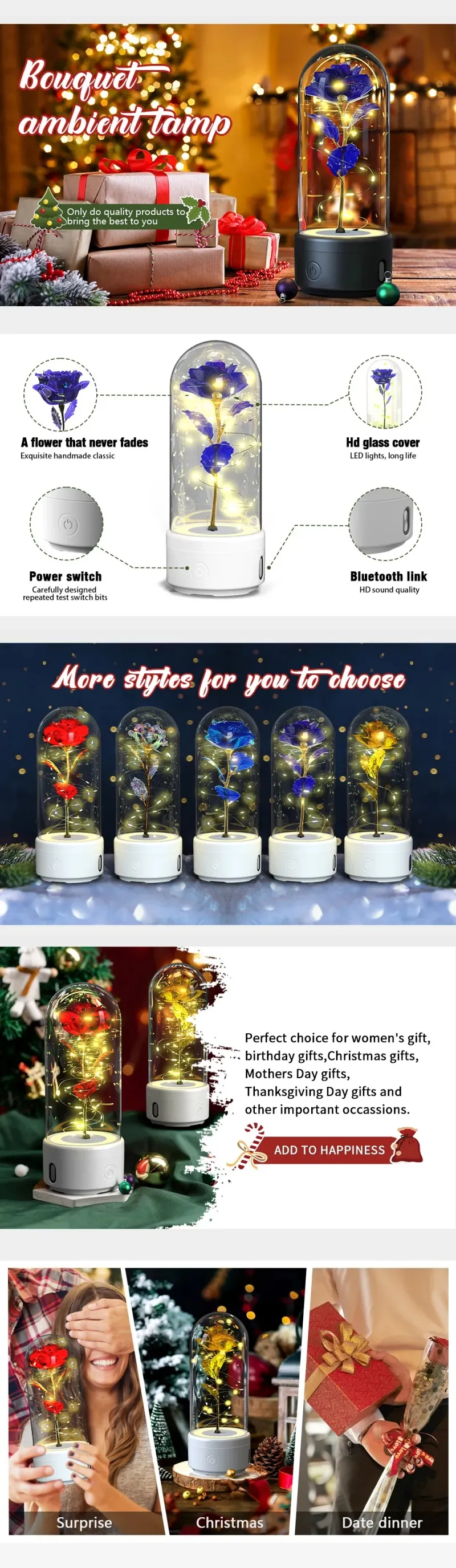 Enchant Your Space with the Creative 2-in-1 Rose Flowers LED Light and Bluetooth-Compatible Speaker