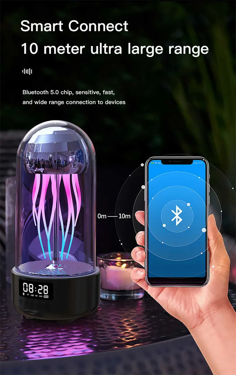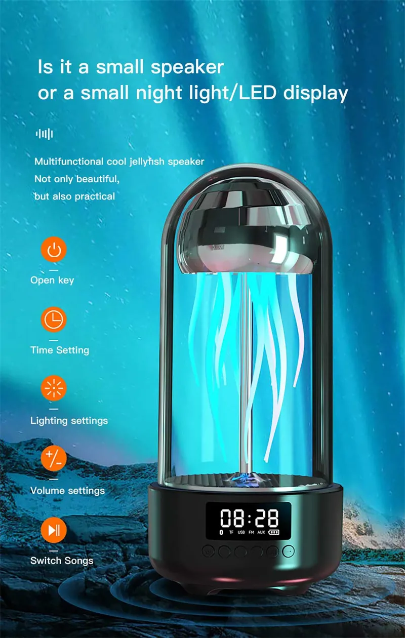 Creative 3in1 Colorful Jellyfish Lamp With And Bluetooth Speaker Clock stereo Breathing Light