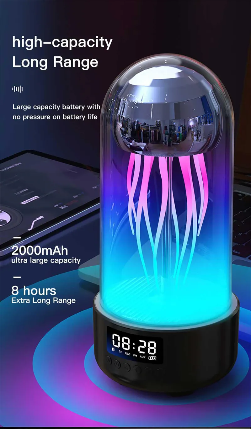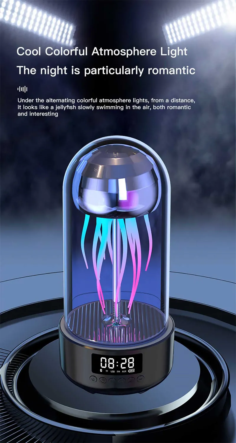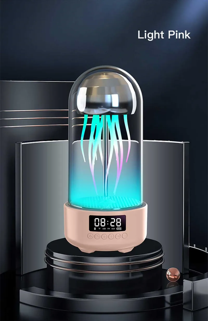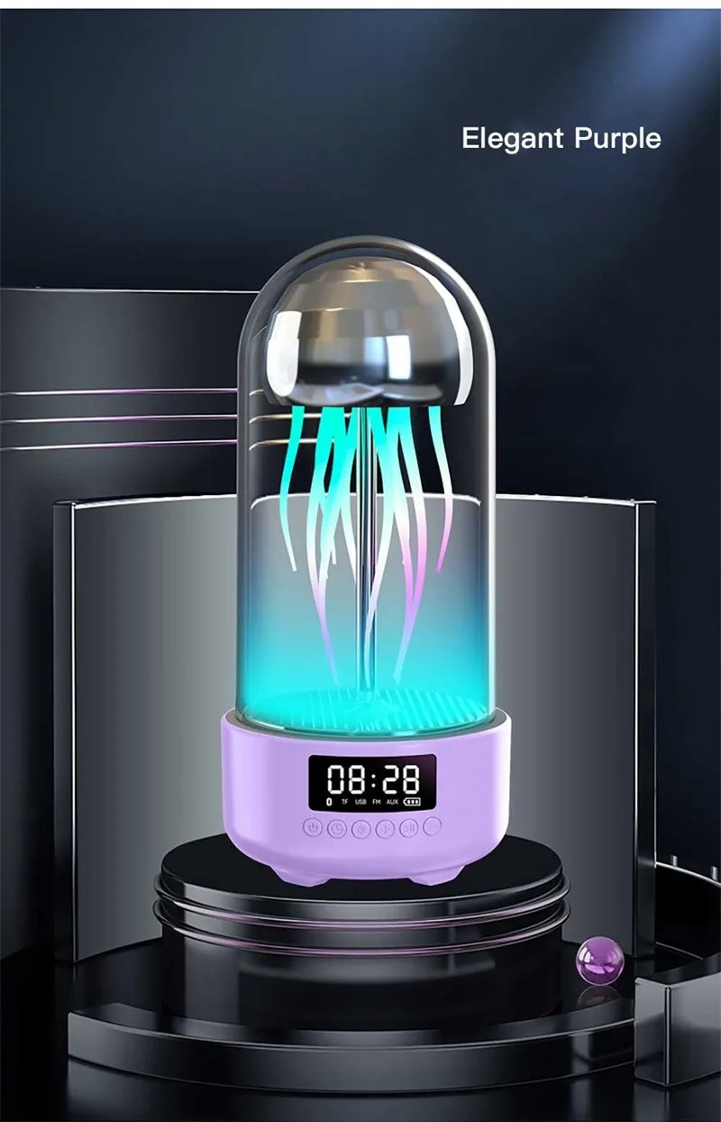 Creative 3-in-1 Colorful Jellyfish Lamp with Clock – Luminous Portable Stereo Breathing Light and Bluetooth Speaker