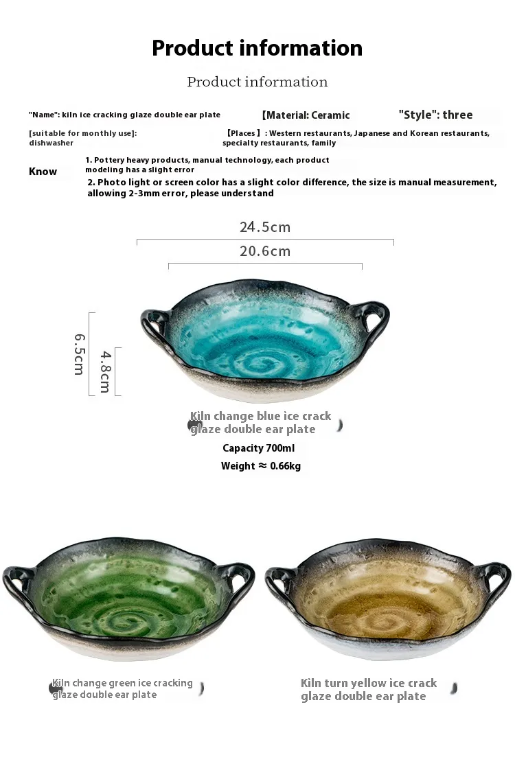 Creative Ceramic Crackle Glaze Binaural Good-looking Household Dinner Plate