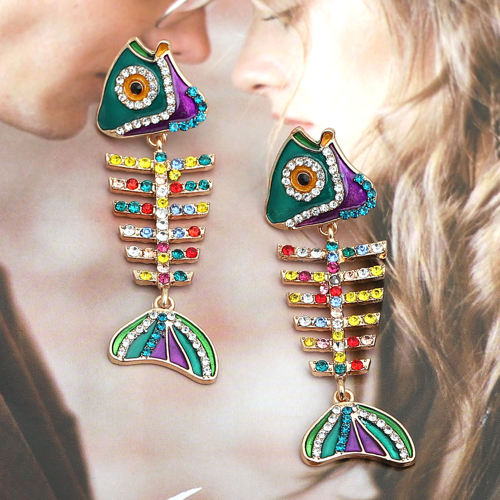 Creative Fashion Fish Alloy Diamond Female Earrings Metal Fishbone Eardrops European And American