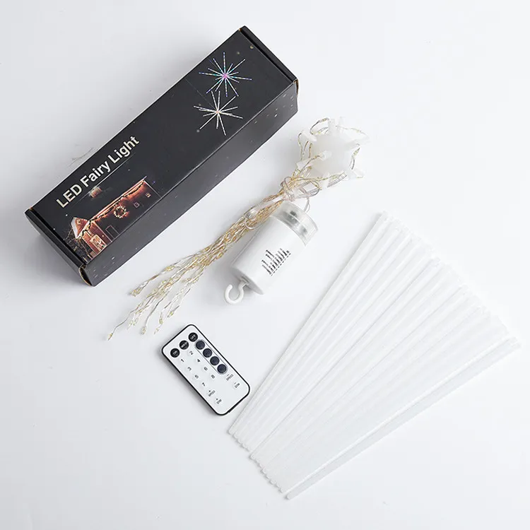 2. Plastic Firework Light-Warm White Star Fairy Light has 14 plastic tubes. There are 112 LED lights inside. It is a practical and durable