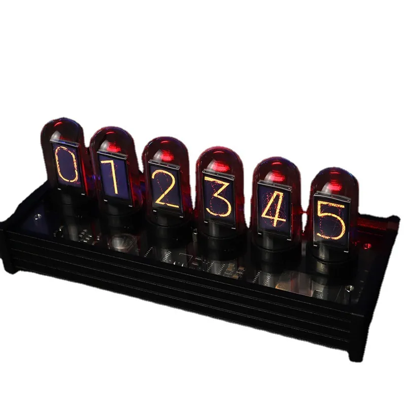Nixie Tube-Inspired LED Display: Featuring an innovative LED display designed to resemble vintage Nixie tube clocks, this
