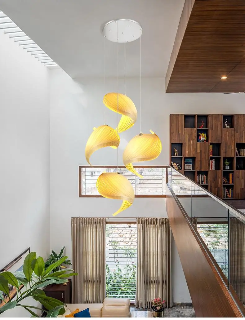 With its unique blend of modern design and natural elements, the Creative Living Room Pendant Lamp enhances any environment with warmth and charm, making it the perfect lighting fixture for those seeking to create an inviting ambiance.