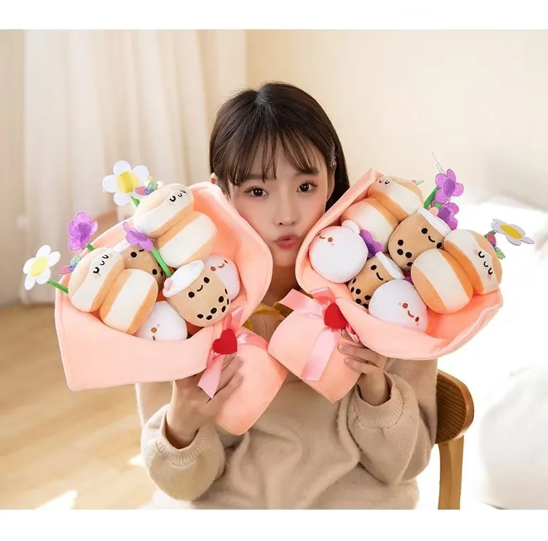 The softness and squishiness of the Milk Tea Bouquet Pillow Plush Toy make it a great item for stress relief. Whether you need something to hold onto during a stressful moment or want to take a break and cuddle, this plush toy provides a calming, comforting presence. The act of hugging or squeezing a plush toy can help reduce stress and anxiety, making it a perfect companion for a moment of relaxation.