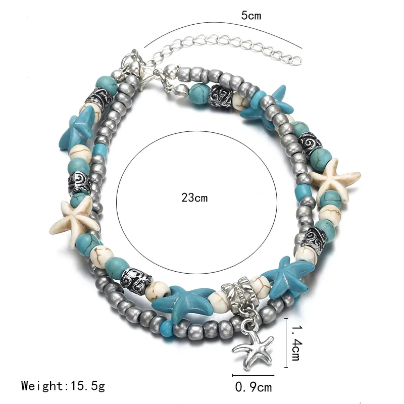 Creative Personality Fashion Accessories Double Starfish Rice Bead Jewelry Yoga Beach Jewelry Anklet