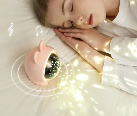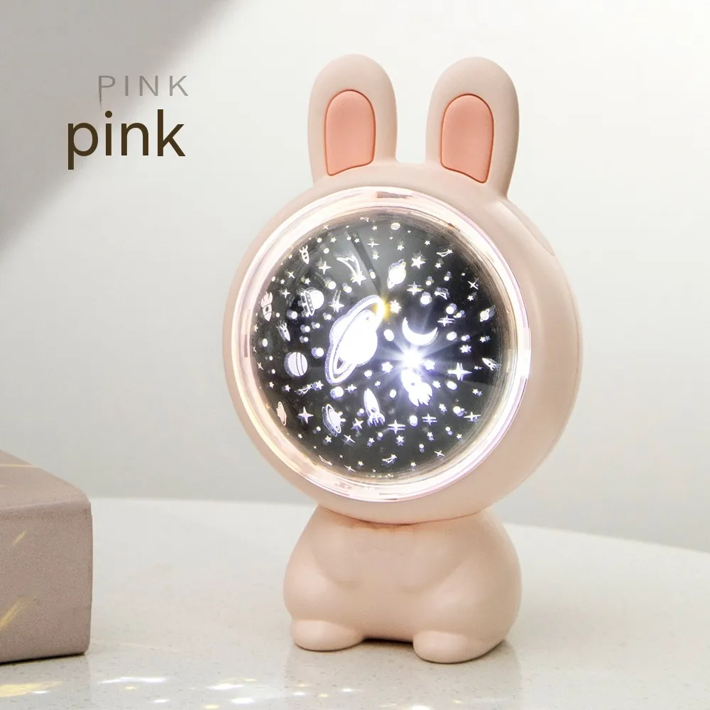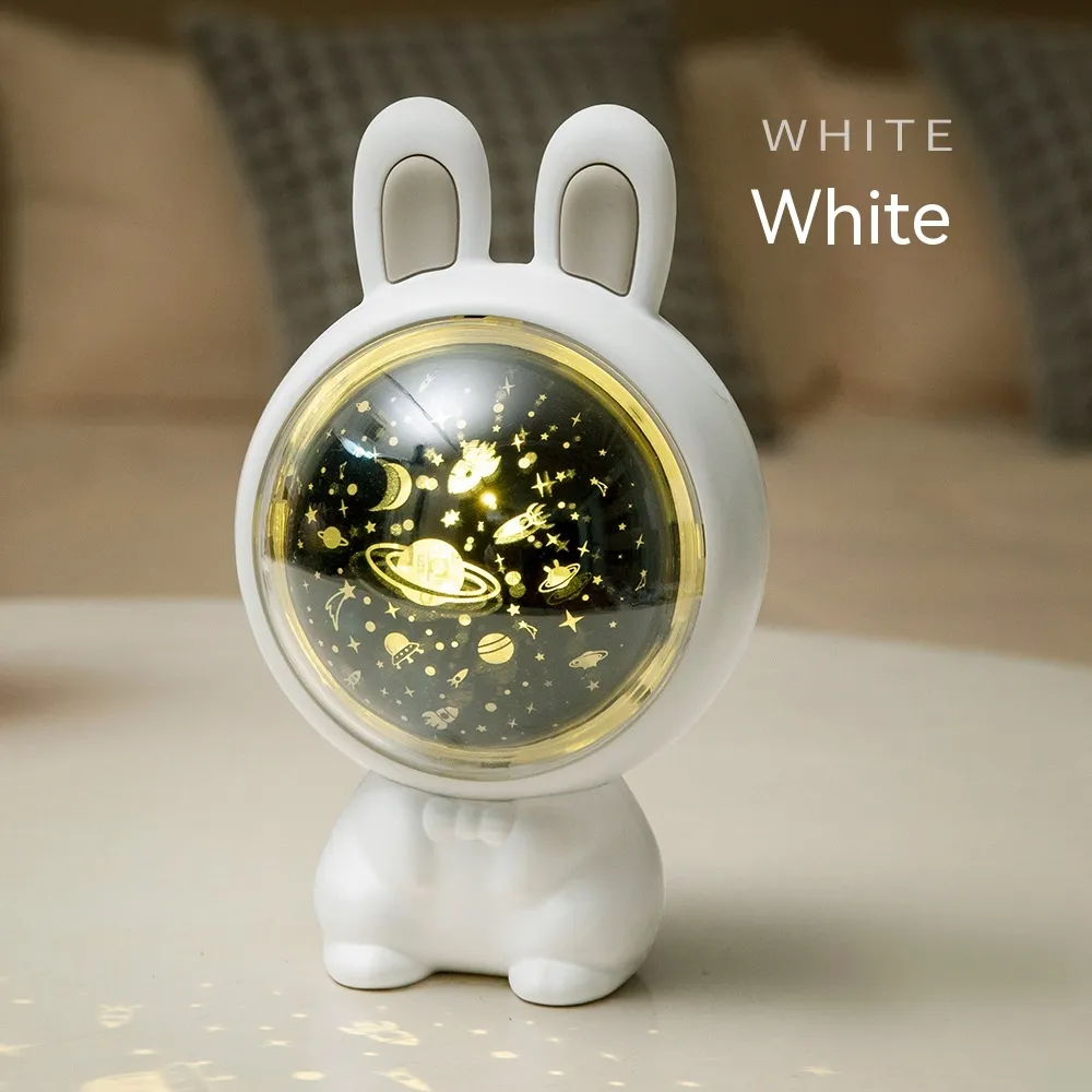 Crafted with a charming rabbit motif, this projector lamp adds a playful touch to any child's room. Available in white and pink, it complements various room themes and color schemes.