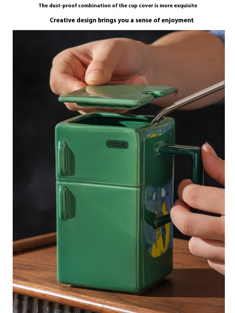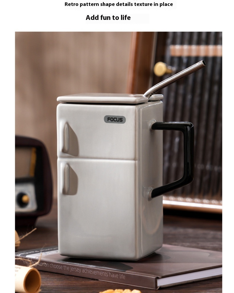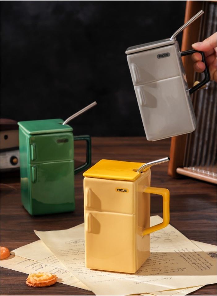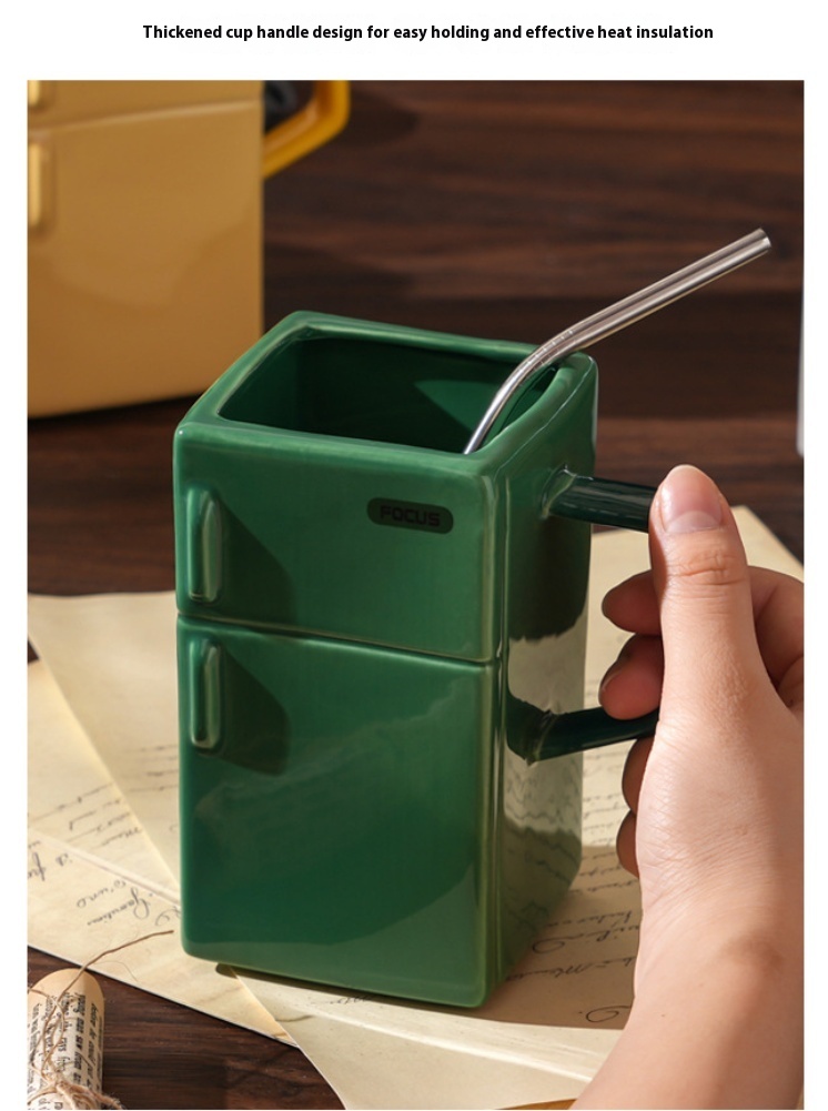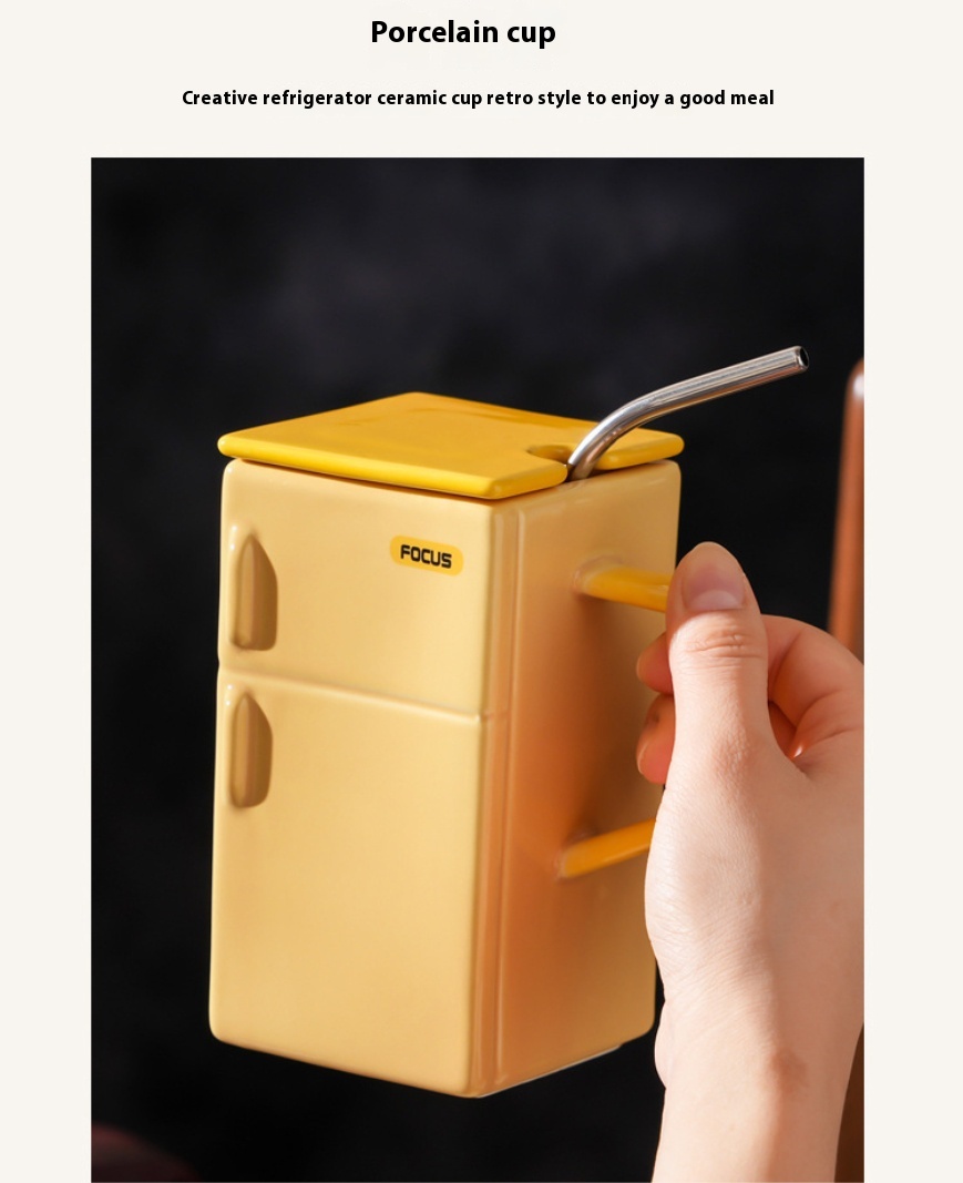 Creative Retro Refrigerator Lid Straw Ceramic Cup Kitchen Gadgets