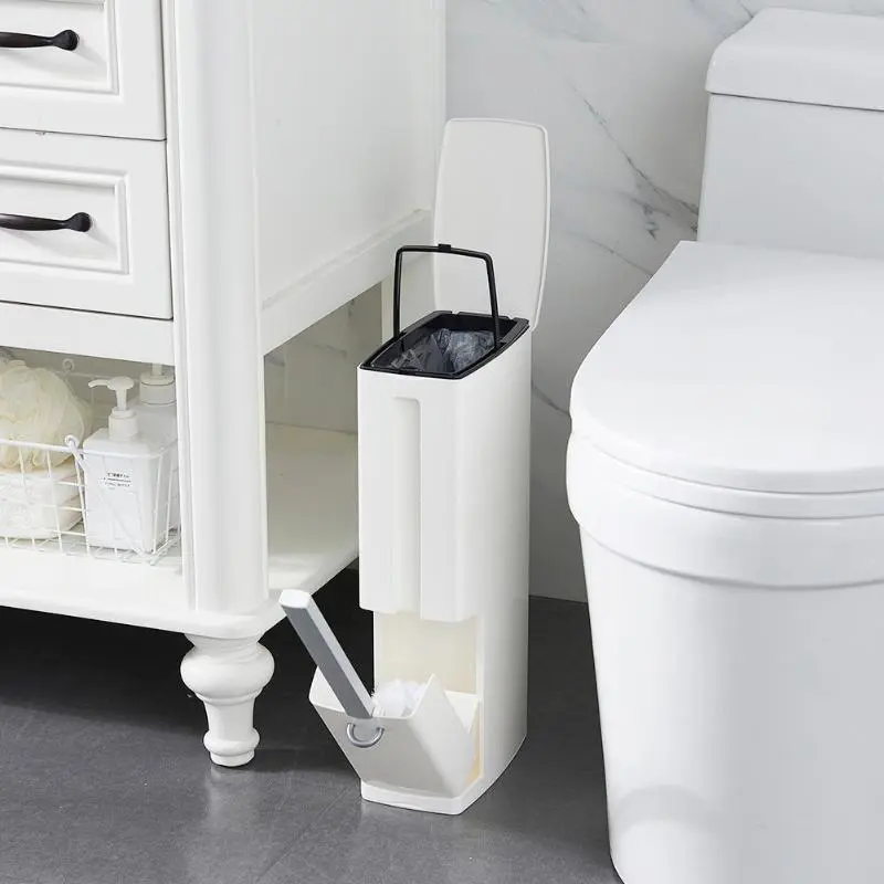 Both the toilet brush and the trash can feature hygiene-conscious designs that keep bacteria and odors at bay. The brush’s holder is ventilated to allow it to dry quickly, preventing unpleasant smells, while the trash can has a tight-sealing lid to contain waste odors.