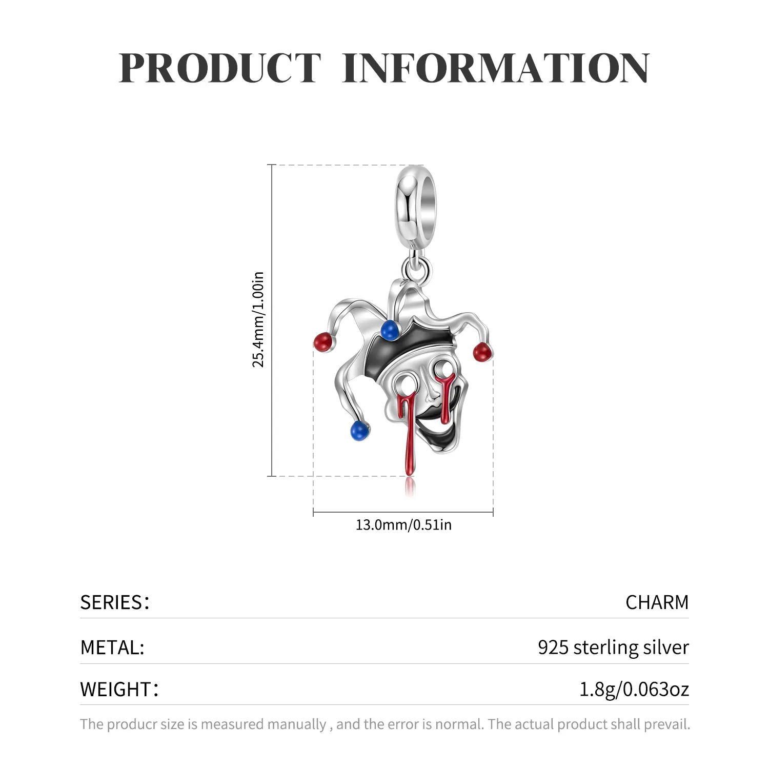 Creative Tragic Clown 925 Silver Drop Glue Pendant Fashion Bracelet Necklace Diy Pendant Accessories