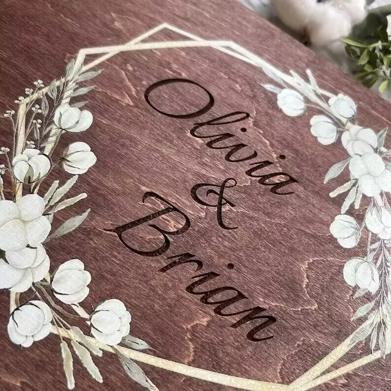 Creative Wooden Wedding Message Book, Photo Album, Notebook