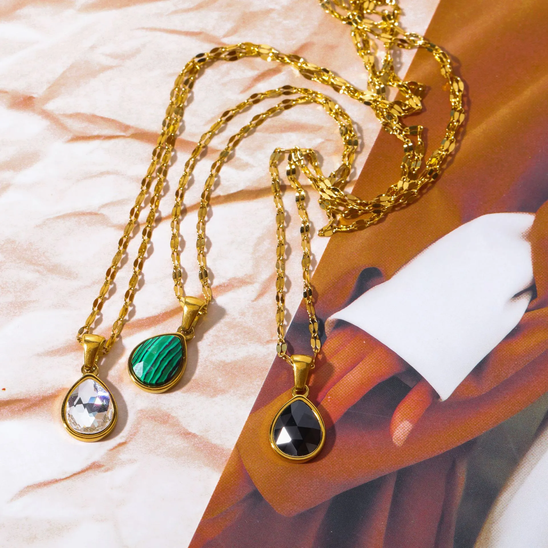Why Choose the Cross-border Malachite Necklace Titanium Steel Water Drop Pendant Zircon Natural Stone Clavicle Chain Gold Plated Color Ornament?
