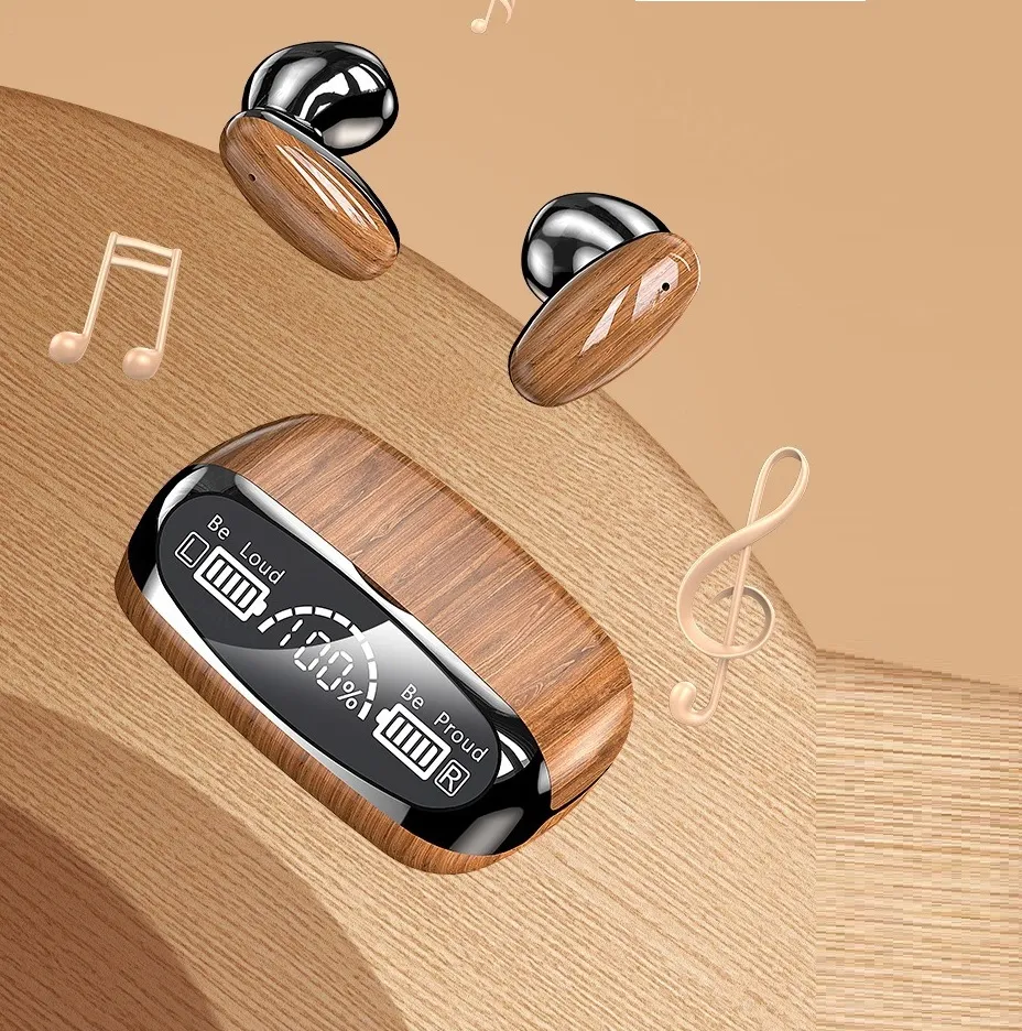 Cross-border New Wood Grain M35 Bluetooth Headset Binaural 52 Private Model TWS Power Display Sports Without Delay Noise Reduction