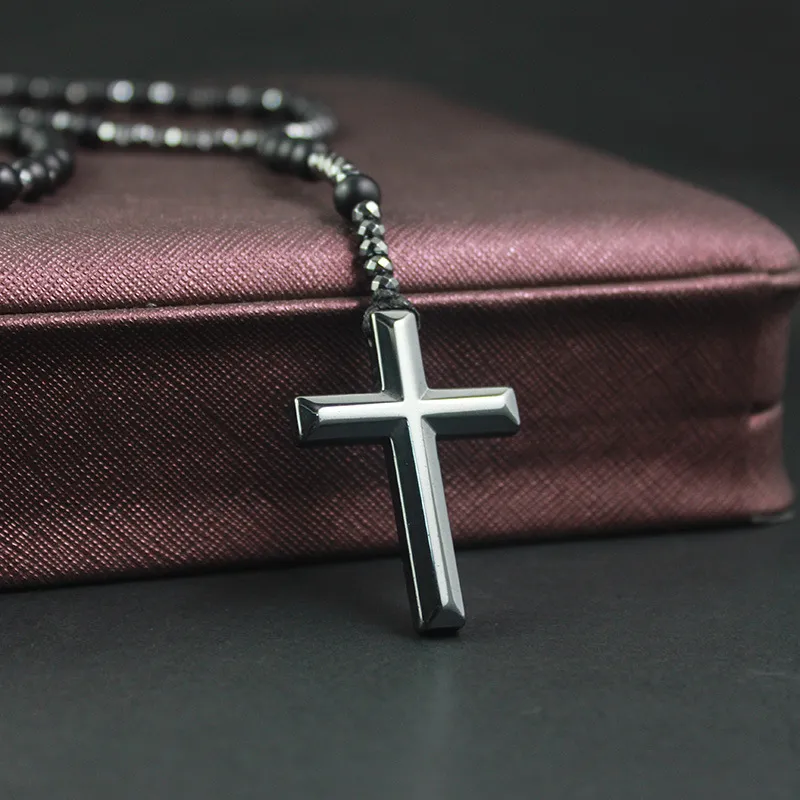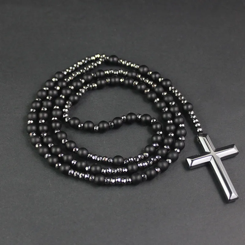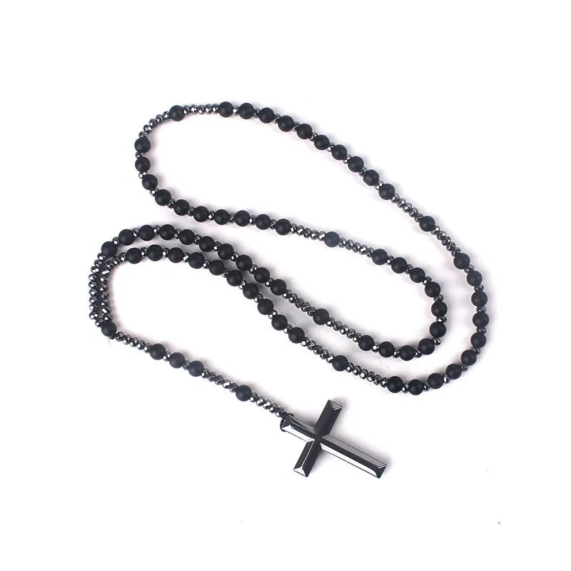 Cross Pendant Black Glitter Matte Agate