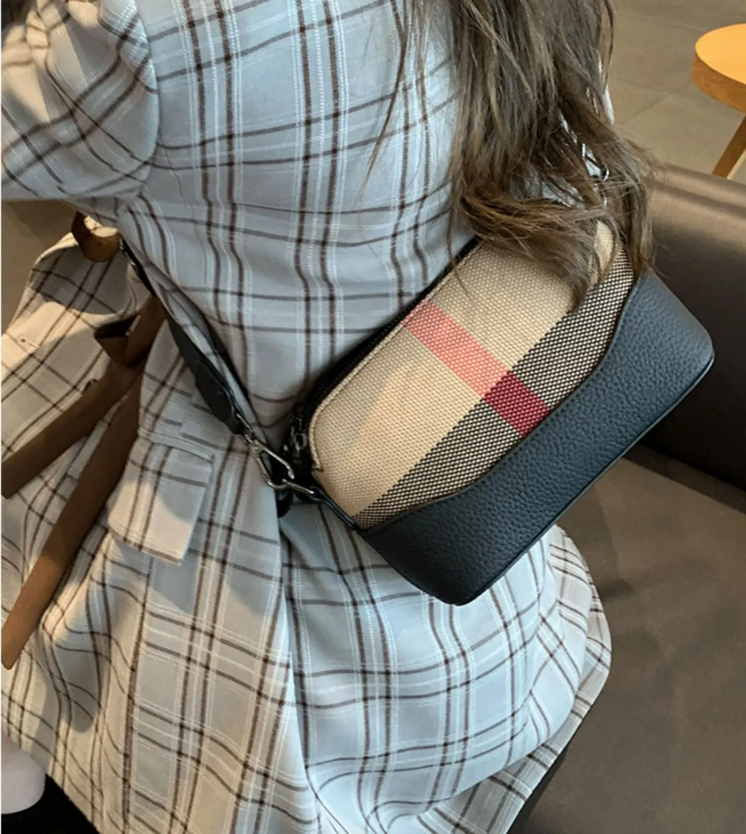 The adjustable strap provides comfort and versatility, allowing you to wear the bag crossbody or on your shoulder for a customized fit.