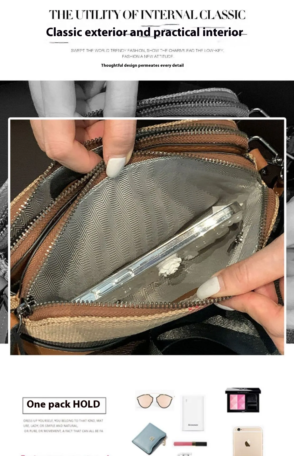 Bag internal structure: zipper change bag, mobile phone bag