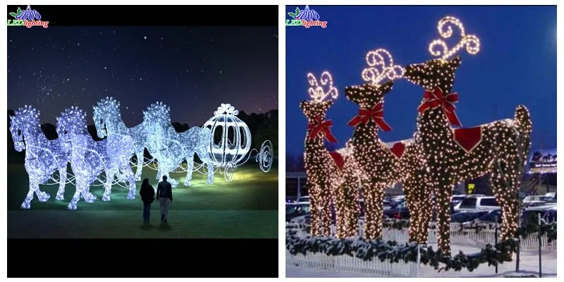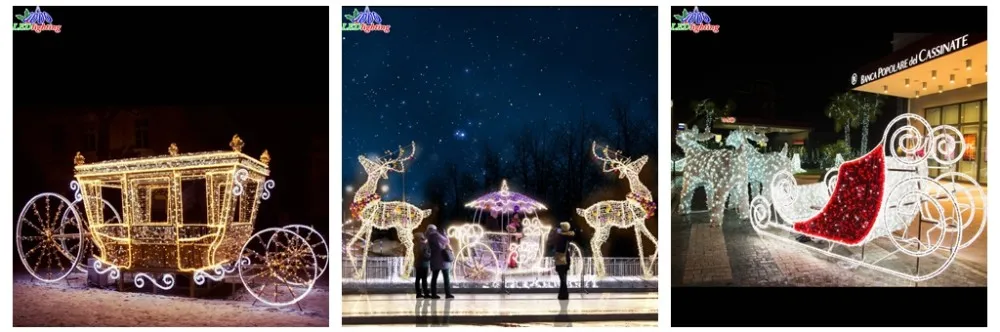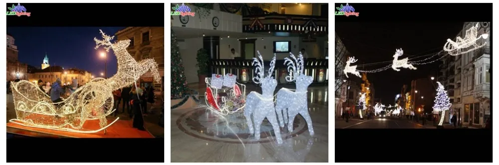 Versatile Use: Ideal for decorating yards, gardens, patios, and other outdoor areas. This LED reindeer with sleigh set is