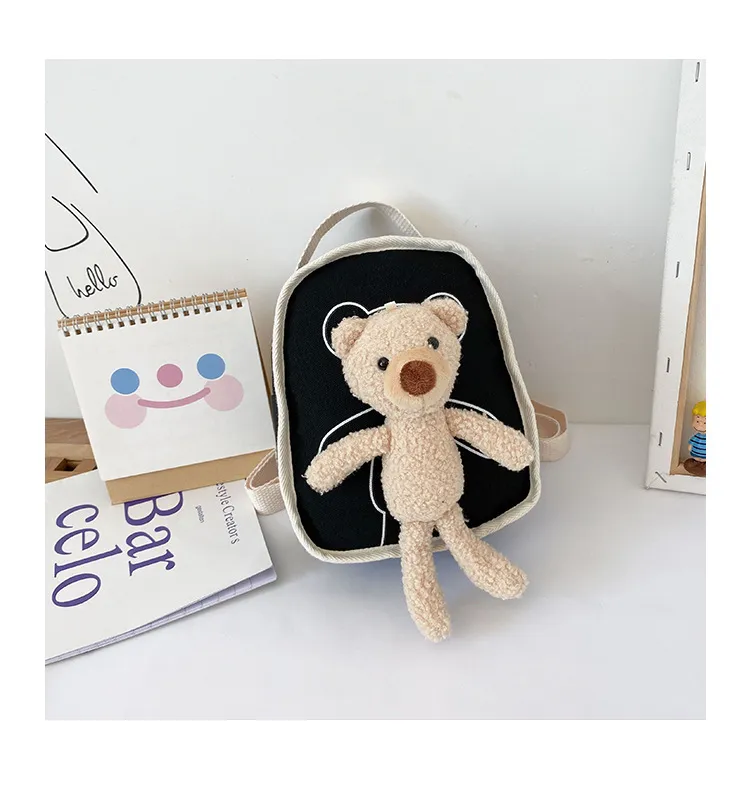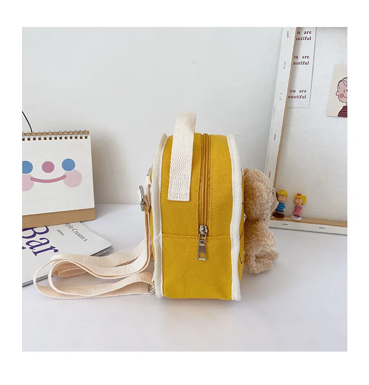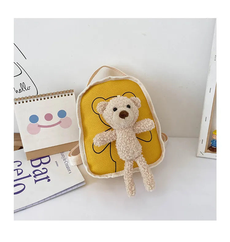 Crafted from high-quality, durable canvas fabric, the Cute Bear Doll Mini Canvas Backpack offers a sturdy and comfortable design for everyday use. The cute bear doll design adds a playful and charming touch, making this backpack both a functional item and a fun fashion statement for your little one. Perfect for everyday wear, this backpack combines practicality with a playful twist that your child will love.